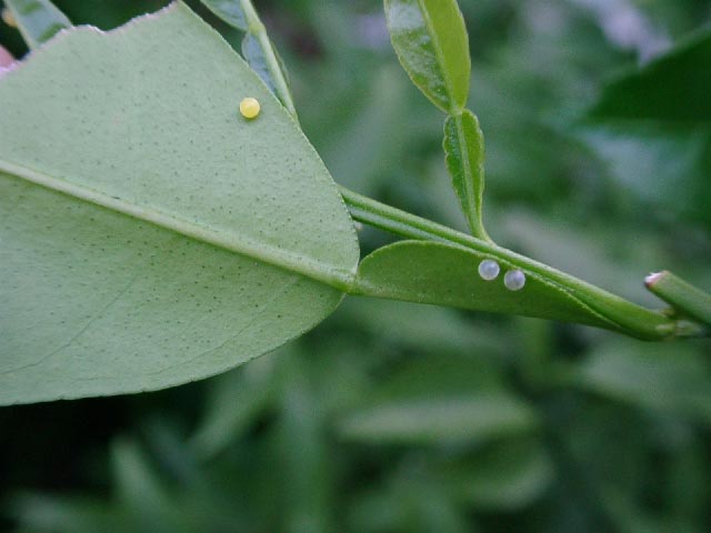 先日ついにデジカメを買いました!嬉しくて嬉しくて、自分のうちの庭の虫を撮りまくってしまいました。 その中でも「あれっ?」と思った4枚を送ります。 (ちょっと重いかも・・・ごめんなさい) 1枚目はクロアゲハの蛹です。前蛹時、寄生蜂が留まっていましたが、今のところはまだ中から蜂が出てくる様子はありません。無事だったのでしょうか・・・。 (そういえば前に「グレープフルーツの木に黄色と黒の棘の生えたような芋虫がいる・・・」とメールをお送りしたのですが、どうやらその虫の正体は蛾の幼虫ではなくクロアゲハの2齢幼虫だったみたいです) 2枚目はグレープフルーツの葉の裏に隠れていたへんてこな虫、体半分しか写っていませんが、何の虫か良く分からなかったので送ります。 3枚目は「梅の木の横にいたのでモモスズメ?」と思ったら、色が少し違うような気もします。 この時かなり瀕死の様子で、写真を撮った後、しばらくしてからまた見てみたら、やっぱり力尽きていたようです。 最後はアゲハの卵、3つ付いているのですが、1つは黄色、後は透明!? アゲハの卵は黄色だとばかり思っていたのに・・・一体この2つはどうしてこんなに色が違うのでしょう? (透明の卵には穴が開いている様子は見られなかったので、まだ孵化はしていないと思います) ・・・初心者で、あまり良く撮れていませんが、これから精進したいと思います。 ![]()