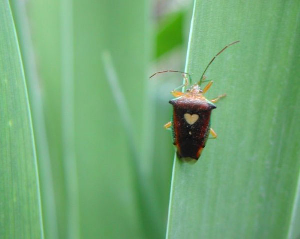 実は昨年の11月ごろ近くの公園の小さな花壇の中で見かけて写しました。 1cmにも満たない大きさのカメムシと思うのですが、ネットでいろいろ探しましたが名前が判りません。(背中のハートマークが気になってます) もしお判りに成ったらお教えいただけますでしょうか? デジカメはじめて9ヶ月です。もともと生物が子供の時から好きで、花や昆虫類を写したくて接写のしやすいカメラにしましたが、花はまだしも昆虫はとてもフレームに残ってくれません。 園長さんは、銀塩のカメラで、望遠のきくマクロズームのレンズとかお使いなのでしょうか? どのようなカメラで写されてるのでしょうか? つゆむしのみごとなクリっとした目が可愛いいです。 ピントが凄いですネ! 私は写せるのは接写ですと、昆虫は脱皮したてとか、雨に濡れてるとか、寒い時くらいです。 でも何とか頑張って少し昆虫が動きだすようになったらご近所の花壇公園、林を歩くのを楽しみにしています。 勝ってなお願いですみません、いつでも結構です。 宜しくおねがいいたします。 ![]()