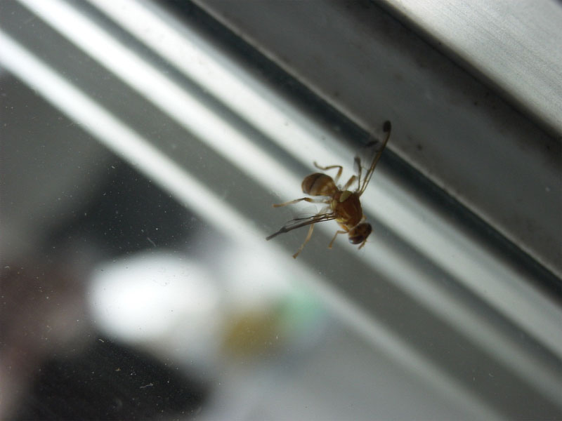そんなやつが、なんで今、あかみねさんのところに‥、と、見てはいけないものを見てしまった気がしましたけど、調べてみると、復活するのを未然に防ぐために、今も不妊化個体を放しているらしいです。この写真のハエは、そういう使命をもったものなのかもしれません。