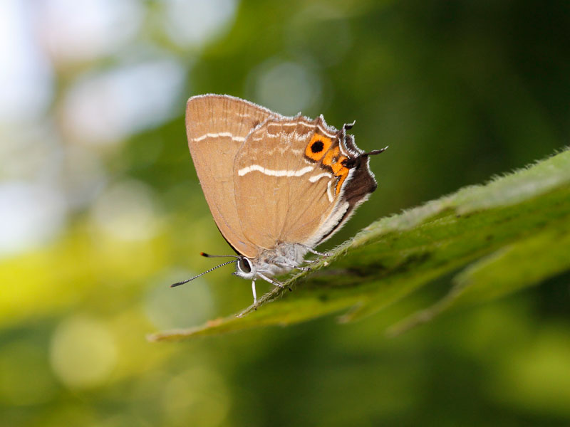 オスのはねが緑色に輝く美しいシジミチョウ。メスのはねは黒地で、青い紋のあるもの、赤い紋のあるもの、紋のないものなど、個体変異がある。